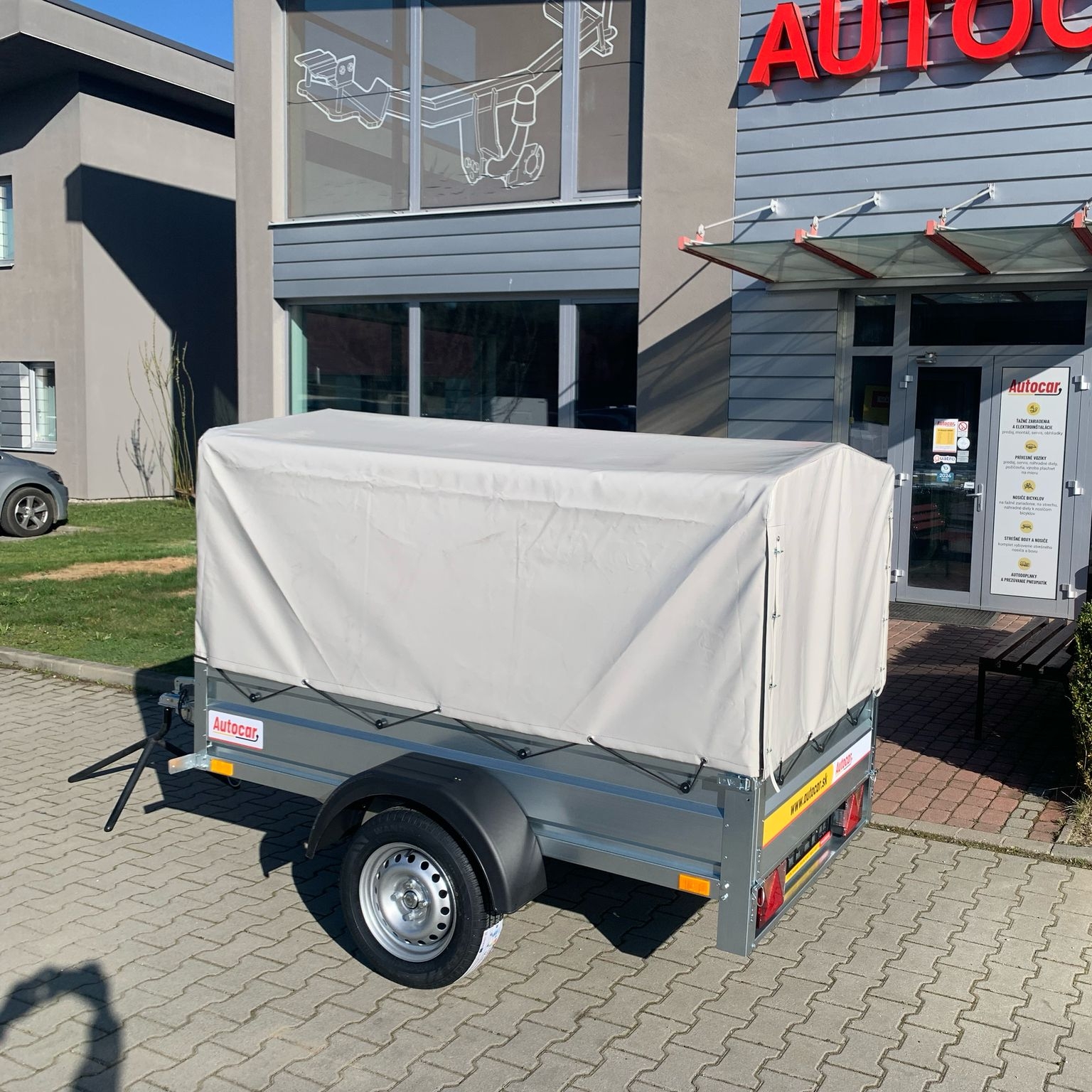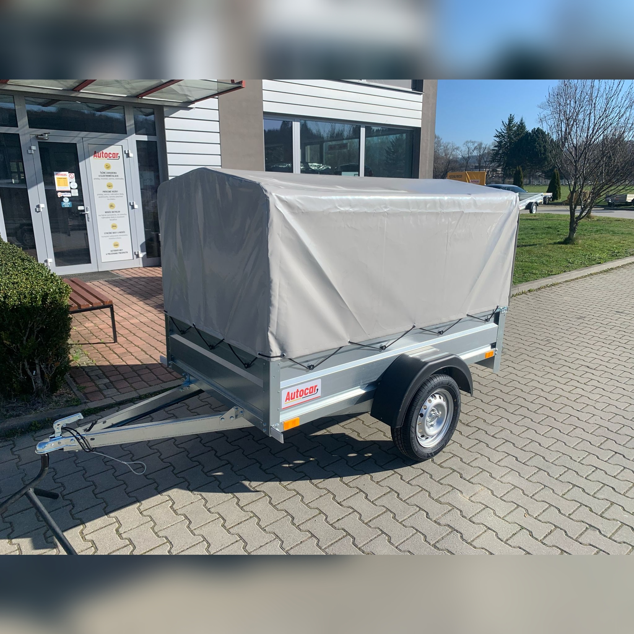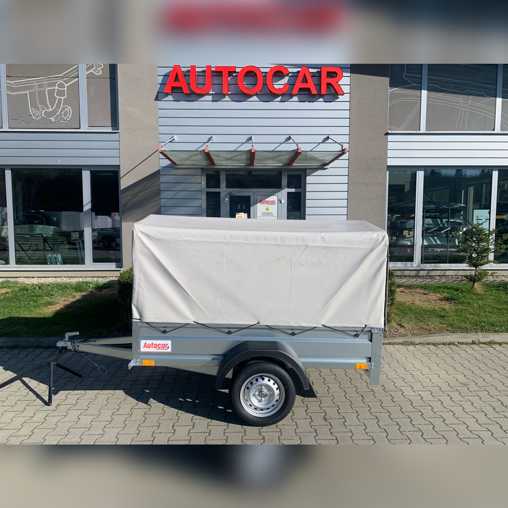 Einachsiger ungebremst Anhänger mit einem Planenaufbau von 1200 mm Höhe ab Anhängerboden. Dieser anhänger verfügt über eine Vollrahmenkonstruktion mit einer Höhe von 6 cm und zwei Querverstärkungen, die auch bei voller Beladung eine hohe Festigkeit und Stabilität gewährleisten. Zur sicheren Befestigung der Ladung befinden sich vier Verzurrösen im Boden. Der Wagen ist mit stabilen, profilierten Seitenwänden aus verzinktem Blech ausgestattet, die eine lange Lebensdauer und Korrosionsschutz gewährleisten. Die hintere bordwand lässt sich öffnen und abnehmen , was das Be- und Entladen von Gütern erleichtert.