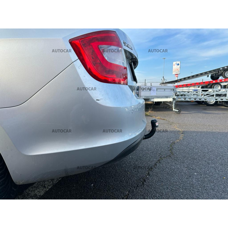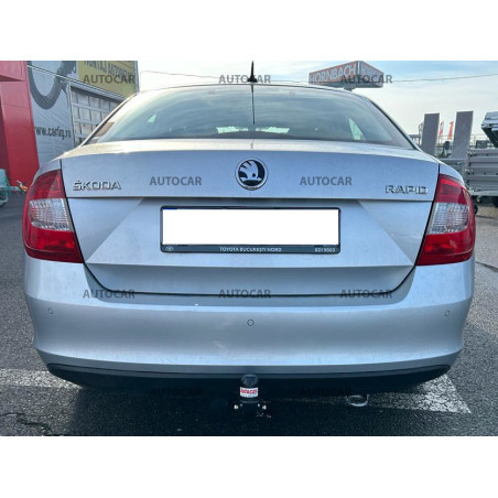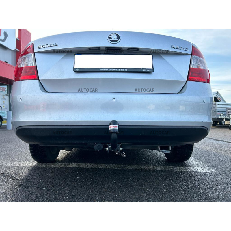 Abnehmbare Anhängerkupplung (Hebelsystem) für Škoda Rapid (2012+). Einfache Handhabung ohne Werkzeug, 1300 kg Anhängelast, 5 Jahre Garantie. Montage in Žebrák (nahe Prag/Pilsen).