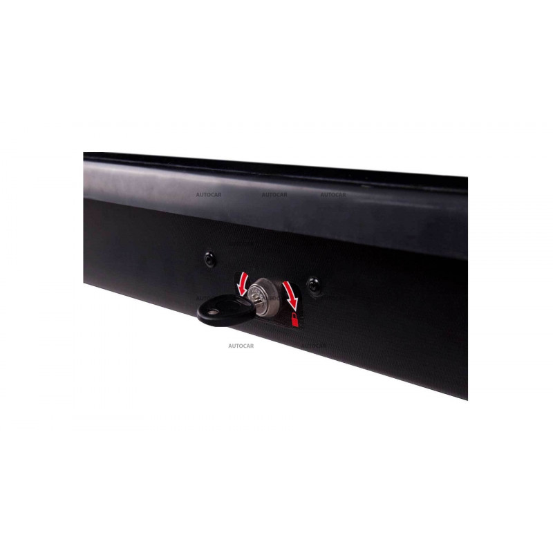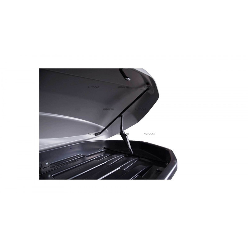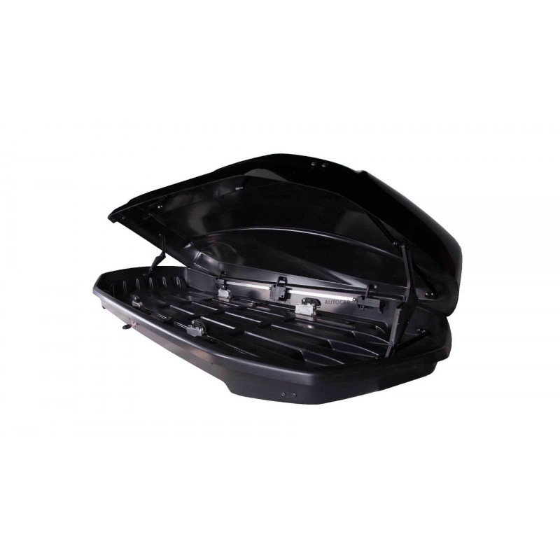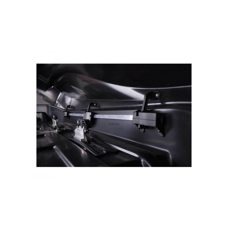 Dank des abgesenkten Bodens und der schlanken, aerodynamischen Silhouette mit relativ geringer Höhe passt sich die Dachbox perfekt an die Karosserie des Autos an. Das betrifft den Fahrkomfort, aber auch das problemlose Parken in einer niedrigen Garage oder das Reisen mit der Fähre. Darüber hinaus befinden sich auf der Rückseite der Box Diffusoren, die perfekt zum modernen Stil von Autos passen.