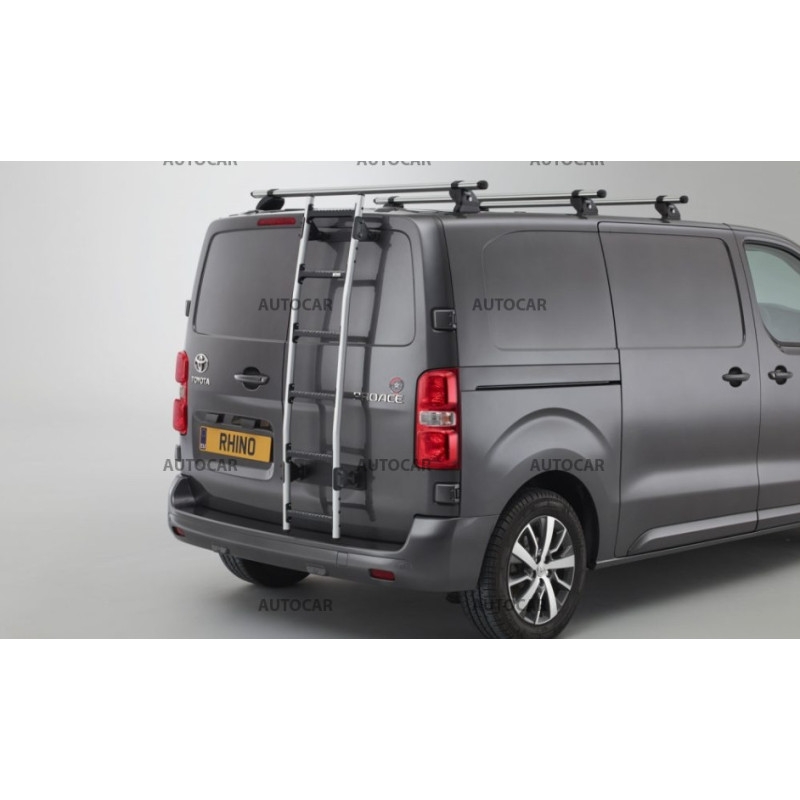 Die Rhino 8-Stufen-Aluminiumleiter vereint Stärke und Stil und ist eines der ästhetischsten Dachzugangsprodukte für Nutzfahrzeuge. Mit sehr robusten Aluminiumgriffen und Glasnylonsprossen bietet die Aluminiumleiter eine extrem leichte Lösung. Jedes Modell ist mehr als 50 % leichter als alte Rhino-Stahlleitern und wurde gründlich auf eine sichere Arbeitslast von 120 kg pro Leiter getestet. Es ist nicht für Transporter mit Fenster an der Hecktür geeignet.