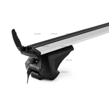 Universeller, aerodynamischer ENVIO-Träger für Fahrzeuge mit integrierten und erhöhten Gleitkufen (Hagus). Aluminiumträger mit 120 cm Länge und einer überdurchschnittlichen Tragfähigkeit von 90 kg in Silber. Vollständig abschließbares System, zertifizierte Sicherheit.
