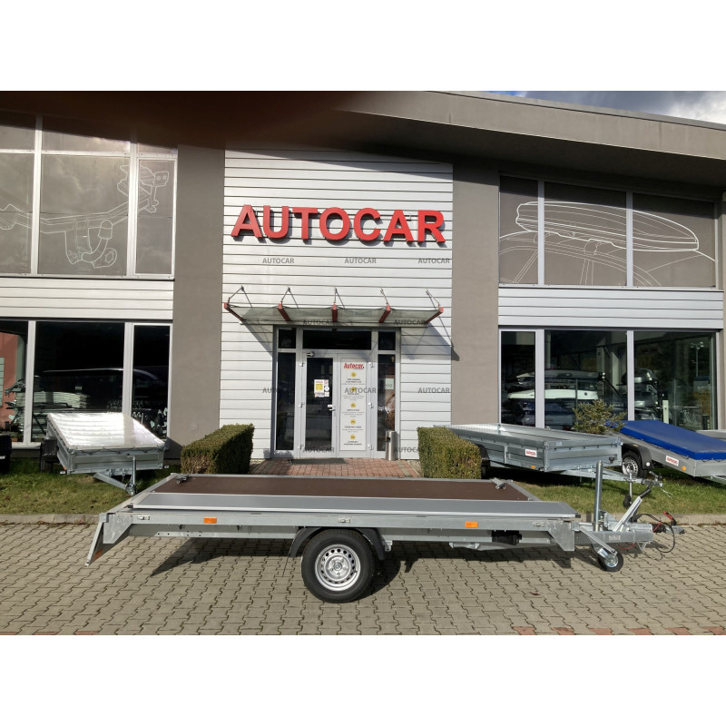 Gebremster Einachsanhänger mit einem Gesamtgewicht von 1300 kg. Eines der Hauptmerkmale dieses Wagens sind die abnehmbaren Seitenwände. Diese Seitenschienen können leicht an den Kanten des Wagens angebracht werden, um die Sicherheit und den Schutz der Ladung während des Transports zu gewährleisten. Durch ihre Abnehmbarkeit kann der Wagen an verschiedene Arten von übergroßen Lasten angepasst werden. Eine einzigartige Fähigkeit dieses Wagens ist die Möglichkeit, ein"Plateau" oder eine Ladefläche zu schaffen.