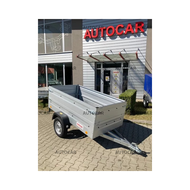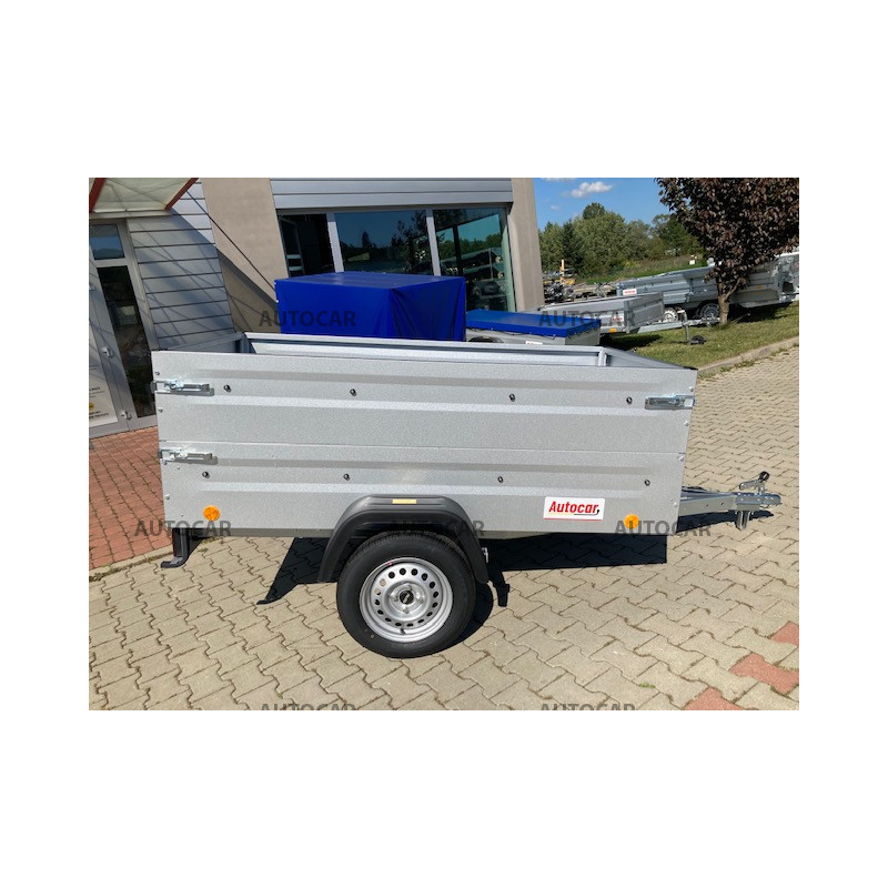 gebremst eine-achse mit seitlichem Aufbau für die Arbeit oder den Garten. Verzinkte bordwände , wasserfester Sperrholzboden, deutsche Achse belastbar bis 750 kg Gesamtgewicht. Die hochwertige deutsche AL-KO Achse ist die Basis des Anhängers und verleiht ihm eine gute Tragfähigkeit und Stabilität auch bei höheren Geschwindigkeiten. Der Wagen hat eine abnehmbare Hinterfront und die bordwände sind abnehmbar. Der Anhänger ist serienmäßig ohne Stützrad.
