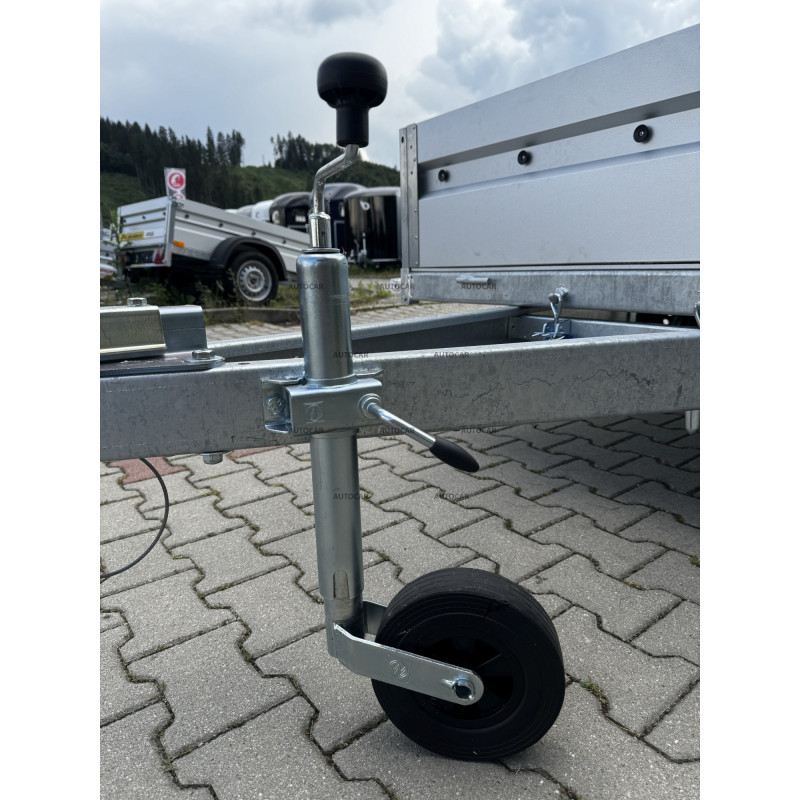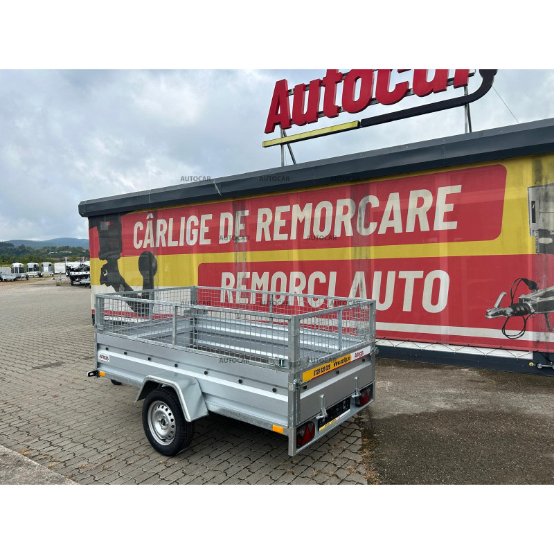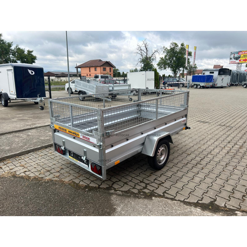 Dieser einachsige ungebremste kippbare Anhänger mit Netzaufbau und einer verstärkten Achse auf 1300 kg, verzinkten Bordwänden, kombiniert Haltbarkeit und Praktikabilität. Er hat einen Sperrholzboden, der eine zuverlässige Unterstützung der Ladung bietet. Mit seinem geschweißten Rahmen und drei Querstreben ist dieser Anhänger bereit für anspruchsvolle Aufgaben.