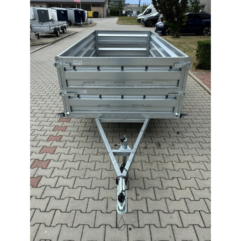 Dieser achsenungebremste Anhänger A330T mit Aufbau-Seitenwänden bietet eine optimale Kombination aus Festigkeit, Kapazität und Leistung. Alle Teile sind feuerverzinkt – Rahmen, Deichsel, Konsolen. Die breite Ladefläche mit den Abmessungen 3300 x 1500 x 700 mm bietet ausreichend Platz für verschiedene Arten von Gütern. Die Konstruktion umfasst drei Querträger, die unveränderliche Stabilität und Widerstandsfähigkeit unter schwierigen Straßenbedingungen gewährleisten. Mit einer Konstruktionstempo von bis zu 140 km/h ist dieser Anhänger bereit für eine schnelle und effiziente Ladungsbeförderung. Das Achssystem hat eine Tragfähigkeit von bis zu 1500 kg, was bedeutet, dass er schwere Lasten mit Leichtigkeit bewältigen kann und daher eine ausgezeichnete Wahl für kommerzielle und private Transporte darstellt. Der Anhänger ist mit einem robusten Siebdruckholz ausgestattet, das vor Feuchtigkeit und Regen geschützt ist und an dem 4 Zurrösen zur Sicherung der Ladung angebracht sind. Die Aufbau-Seitenwände dieses Anhängers werden im Kaltpressverfahren hergestellt, was ihre Widerstandsfähigkeit und Zuverlässigkeit gegenüber äußeren Einflüssen und mechanischem Verschleiß gewährleistet und zudem eine höhere Festigkeit bietet.