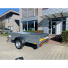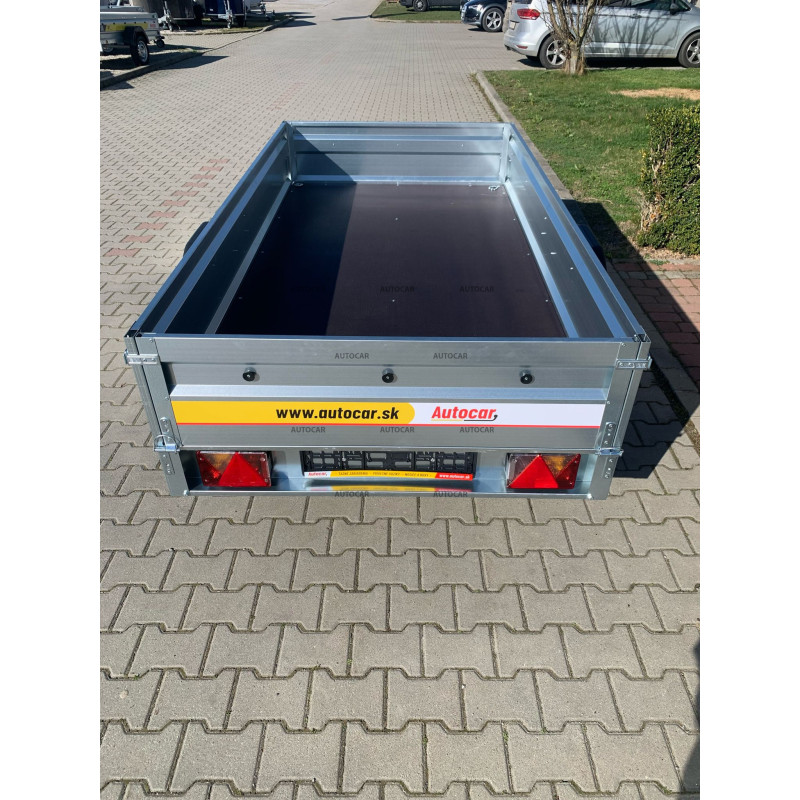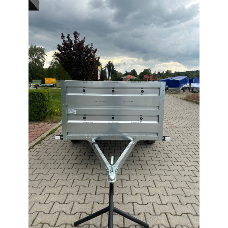 Einachsiger, ungebremst Anhänger mit Mit seinen robusten Seitenwänden, der 6 cm hohen Rahmenkonstruktion und drei Querverstärkungen gewährleistet der Lkw auch bei voller Beladung hohe Festigkeit und Stabilität. Vier Verankerungsösen im Boden sorgen für sichere Ladungssicherung. Die stabilen, profilierten Seitenwände aus verzinktem Stahlblech garantieren eine lange Lebensdauer und Korrosionsschutz. Die bordwand ist abnehmbar und ermöglicht so ein einfaches Be- und Entladen.