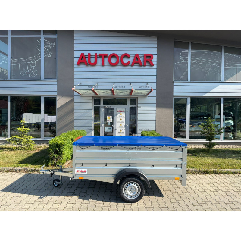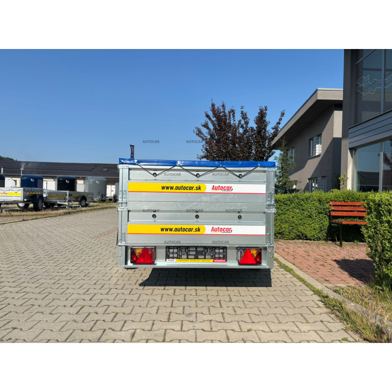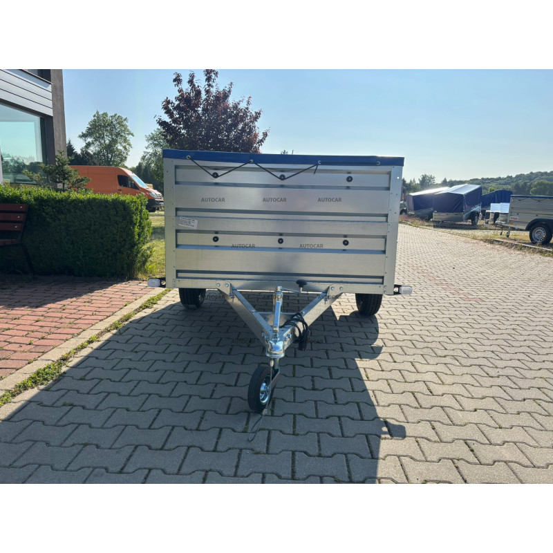 Einachsiger, ungebremst Anhänger mit Seitenwänden, Flachplane, Stützrad und 6 cm hoher Vollrahmenkonstruktion mit drei Querverstärkungen sorgt für hohe Festigkeit und Stabilität auch bei voller Beladung. Vier Verankerungsösen im Boden sorgen für eine sichere Befestigung der Ladung. Der Anhänger ist mit robusten Profilwänden aus verzinktem Blech ausgestattet, die eine lange Lebensdauer und Korrosionsschutz gewährleisten.