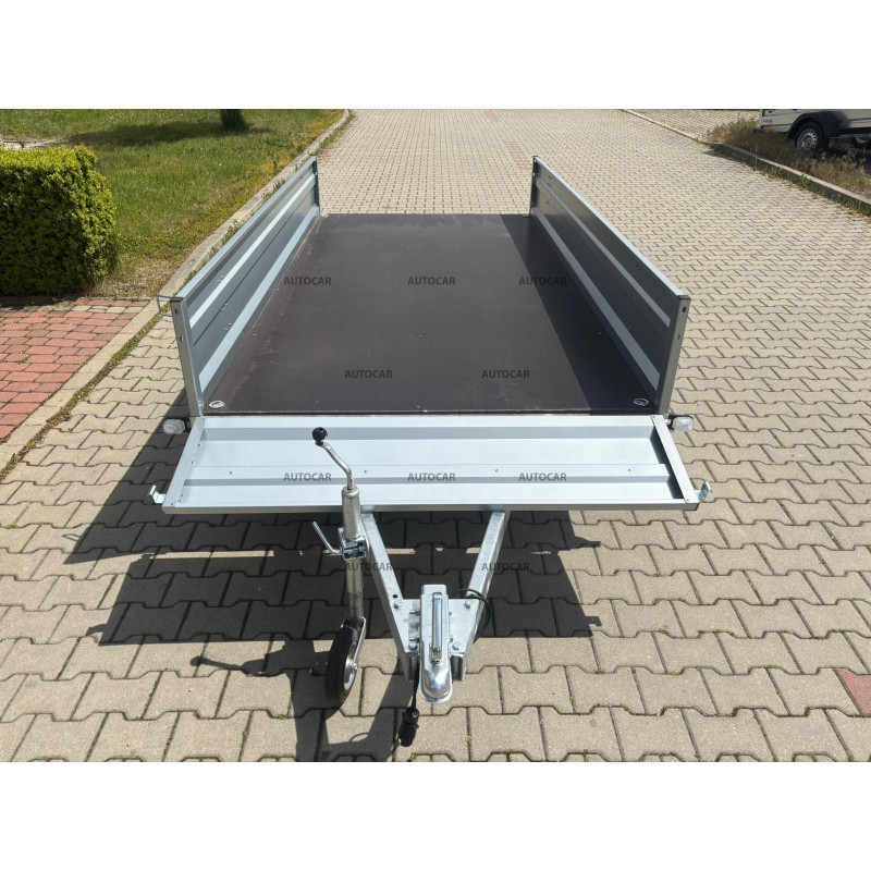 Der faltbare eine-achse ungebremst anhänger mit einer Plane mit einer Höhe vom Anhängerboden von 120 cm und einem robusten geschweißt Rahmen von 8 cm mit 4-facher Querverstärkung stellt eine zuverlässige Lösung für den Transport jeglicher Ladung dar. Sein U-Profil-Rahmen und seine C-Profil-Deichsel sind aus bis zu 2,5 mm dickem Material hergestellt. Seine breite Ladefläche mit den Abmessungen 2630 x 1540 und eine bordwände von 390 mm, aber das Wichtigste ist die bordwände von bis zu 1 mm , die Festigkeit und Haltbarkeit garantieren. Dieser LKW ist mit einem wasserfesten Sperrholzboden mit Bodenösen ausgestattet. Die faltbare Struktur auf der 9 cm hohen Deichsel ermöglicht ein einfaches Be- und Entladen von Ladung, wodurch dieser Anhänger für verschiedene Transportanforderungen geeignet ist. Außer der Faltbarkeit verfügt anhänger auch über eine nach vorne zu öffnende Vorderseite und stützrad .