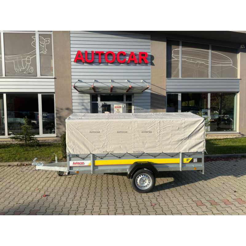Klappbarer eine-achse ungebremst anhänger mit einer Plane von 140 cm Höhe ab Anhängerboden und einem robusten geschweißt (8 cm), 4-fache Querverstärkung sorgt für Stabilität und Langlebigkeit. Die Ladefläche 3040 × 1540 mm mit 390 mm Seitenwänden (1 mm dick) bietet viel Platz. Der wasserdichte Sperrholzboden mit Ösen ermöglicht eine sichere Befestigung der Ladung. Der Anhänger verfügt über eine Klappkonstruktion an der Deichsel (9 cm) zum einfachen Beladen, eine Frontöffnung und stützrad . Ein zuverlässiger und praktischer Helfer für den Transport verschiedener Lasten.