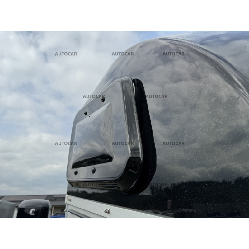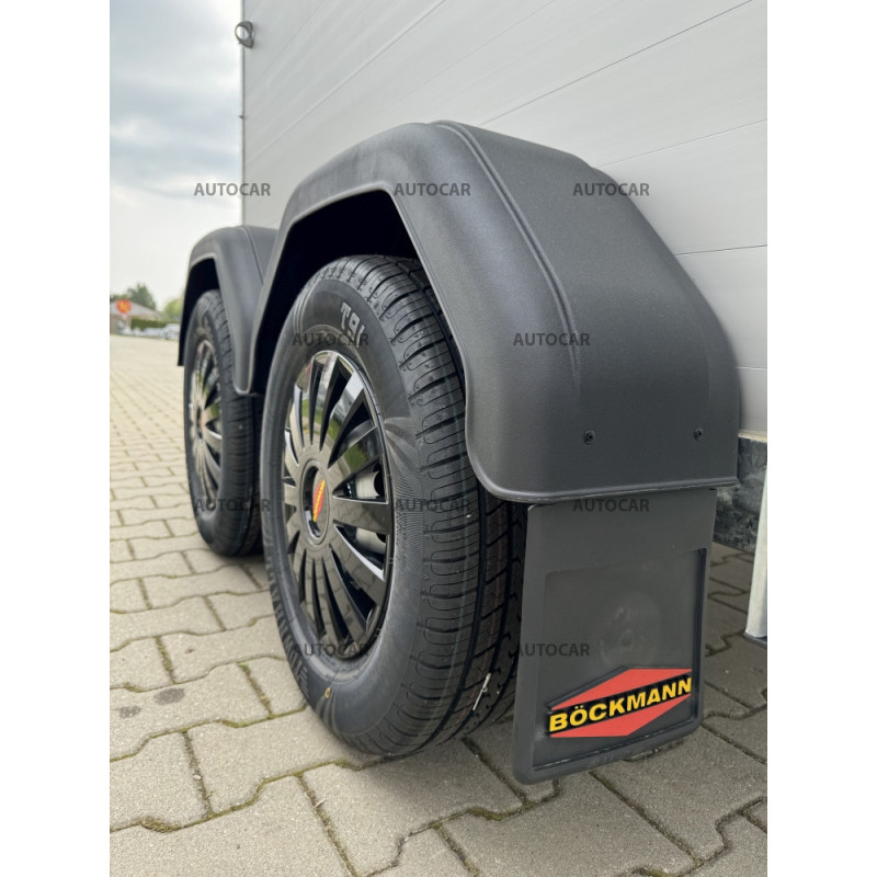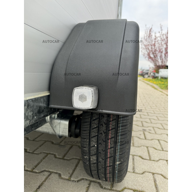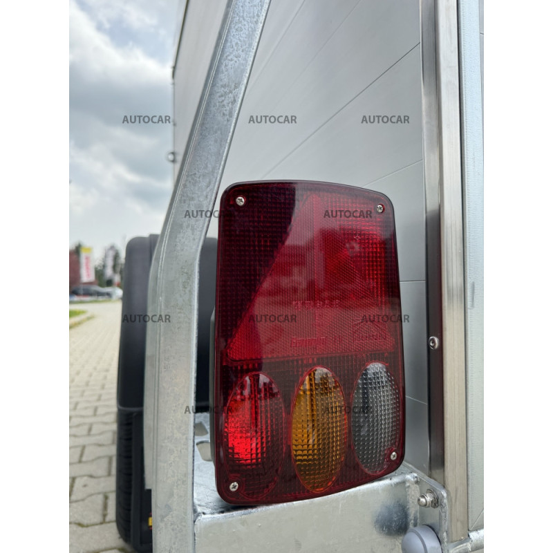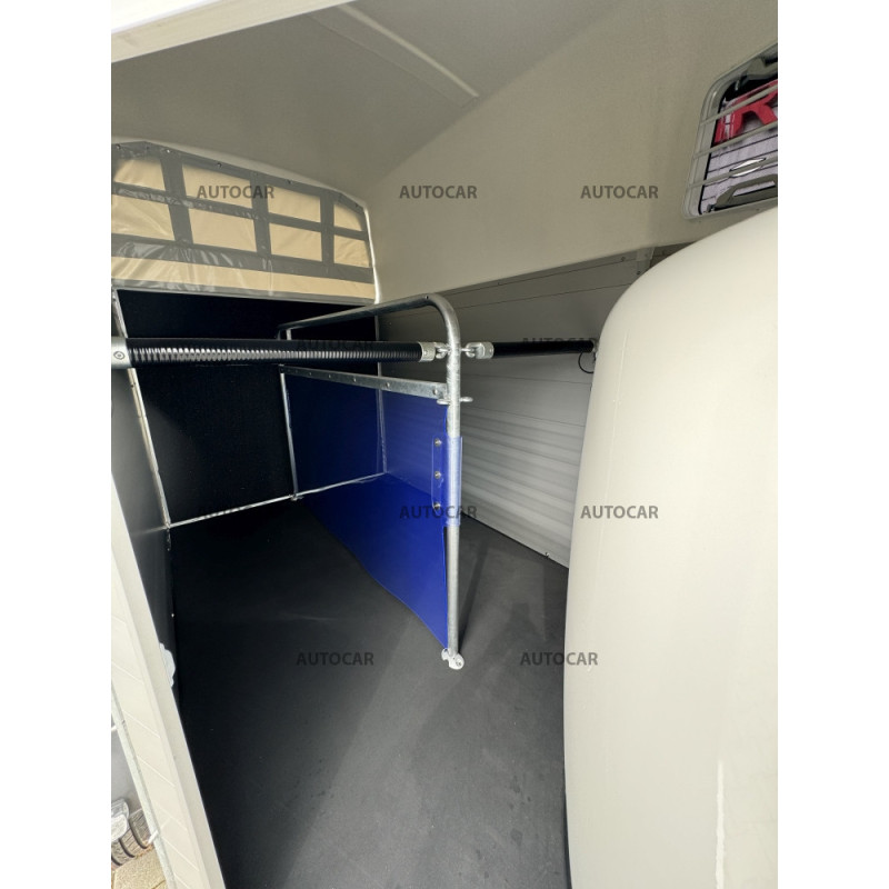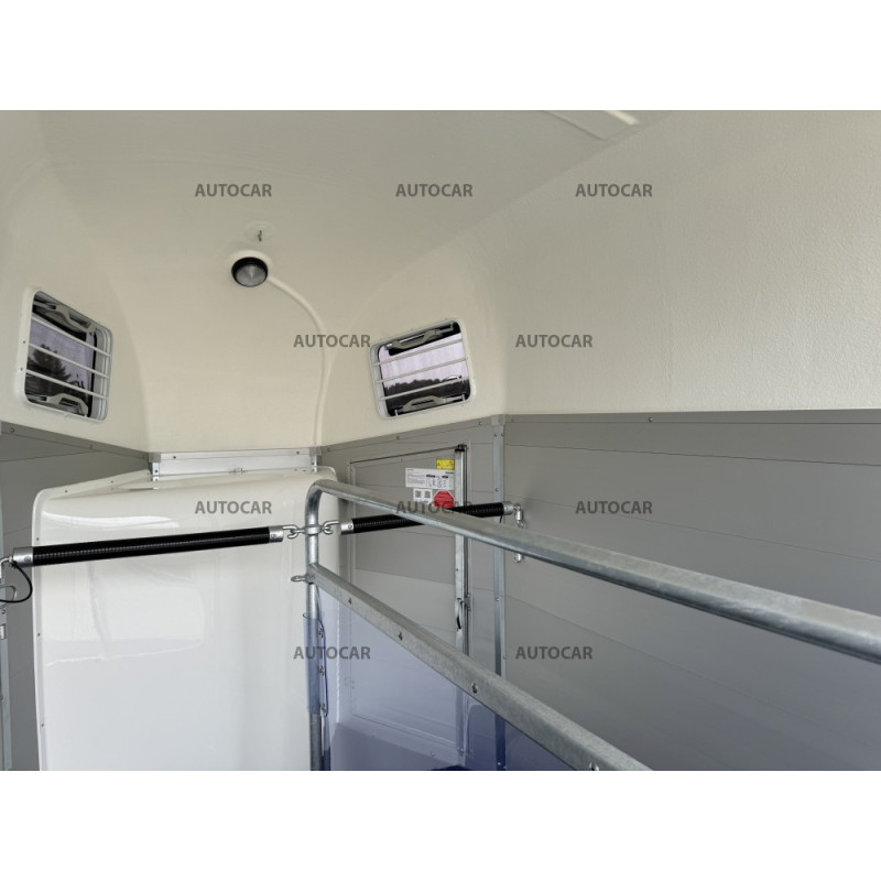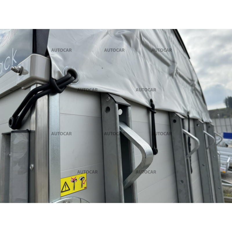 Verzinkter Stahlramen, CFF-Plus Fahrgestell mit daempfer, Alu-Boden, Wende des Anhaengers aus Alu-elox 1500mm hoch, Polyesterhaube in silberStahlic, getoente Fensterscheiben, Innenbeleuchtung, verschliesbare Tuer, Planenlift, Gummiboden verklebt und versiegelt, Gummi auf Beladeklappe mit integrierten Trittleisten und Seitenstop, Trennwand mit PVC-Teil. Sattelkiste mit Sattelhalter, Beseb, Schaufel, Spiegel.
