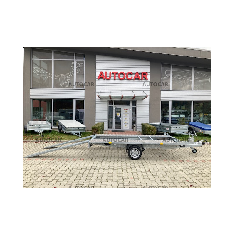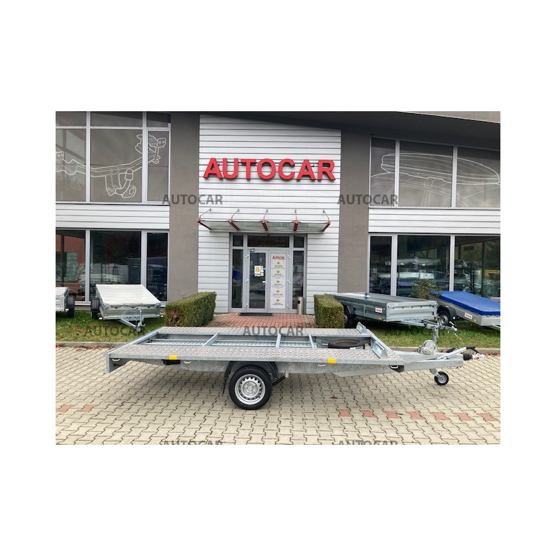 Autotransporter-Tieflader. Anhänger besteht aus robuste, feuerverzinkte, geschweißte Stahlkonstruktion,  die garantiert eine lange Lebensdauer.