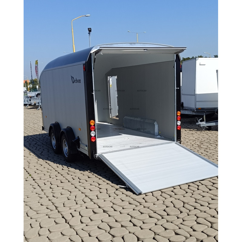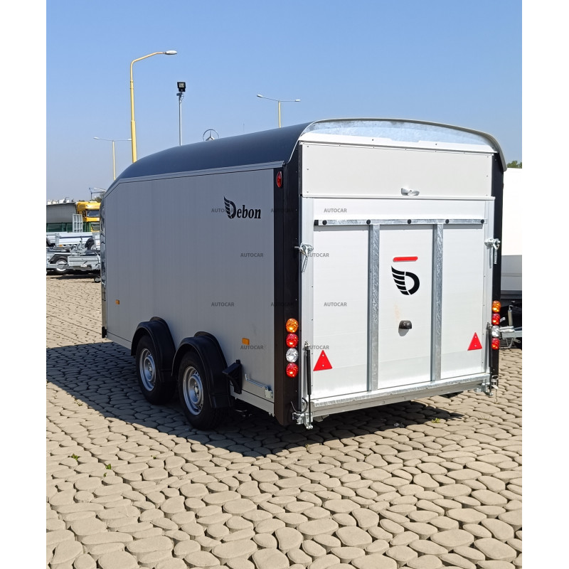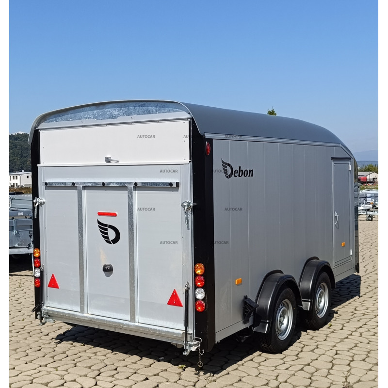 Der Anhänger des französischen Unternehmens Cheval Liberté Debon C800 ist ein vielseitiger, designorientierter, aerodynamisch geschlossener Anhänger (für den Transport von Autos, Motorrädern und anderen Maschinen). Eine einzigartige Eigenschaft des Anhängers ist der vielseitige hintere Teil, der als Rampe dient, aber auch als seitliche Tür eingestellt werden kann. Der Anhänger ist aus einem verzinkten Stahlrahmen, Aluminiumpaneelen mit einer Dicke von 12 mm, einem Pullman 2-Fahrgestell und unabhängig aufgehängten Rädern mit Federung und Dämpfung gefertigt. Der Boden ist vollständig aus Aluminium und rutschfest. Die vordere Partie und das Dach des Anhängers sind aus einem 8 mm dicken Laminateinzelblock gefertigt, der dem Anhänger ein perfektes Design und Aerodynamik verleiht.