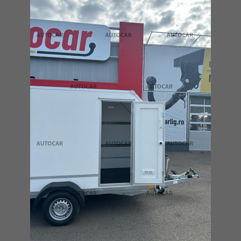 Einachsiger gebremster Kastenanhänger mit Abschrägung bis 1300 kg ist ein kompakter und praktischer Transporter, der häufig für den Transport verschiedener Güter verwendet wird. Die Wände des Anhängers bestehen aus Sperrholz, der Boden aus wasserfestem Sperrholz. Standardmäßig ist der Kasten in Weiß mit Seitentüren und Rampe ausgeführt. Der Anhänger ist mit einer hinteren Rampe ausgestattet, die als Auffahrtsrampe dient. Die Grundausstattung umfasst Bodenverankerungen zur Sicherung der Ladung mit Gurten oder Seilen, um ein Verrutschen während des Transports zu verhindern. Darüber hinaus verfügen diese Anhänger über hintere Stützfüße, die das Fahrzeug beim Be- und Entladen stabilisieren. Weitere Komponenten sind Unterlegkeile, die zur Sicherung des Anhängerrads verwendet werden, um eine Bewegung beim Stillstand zu verhindern.