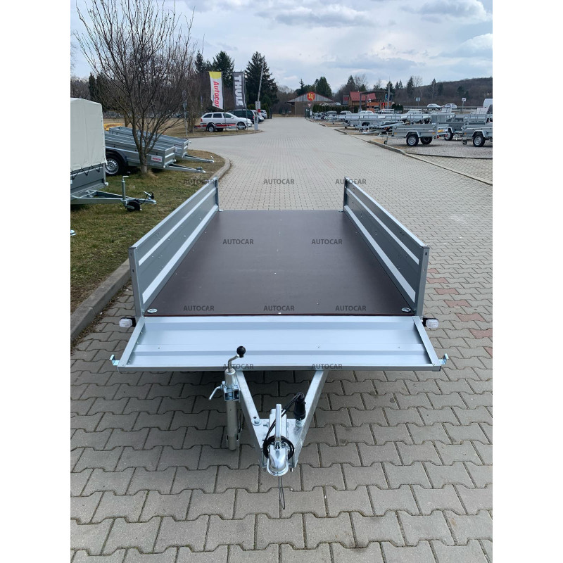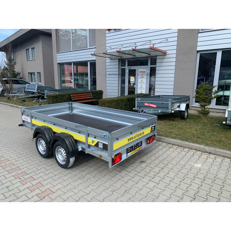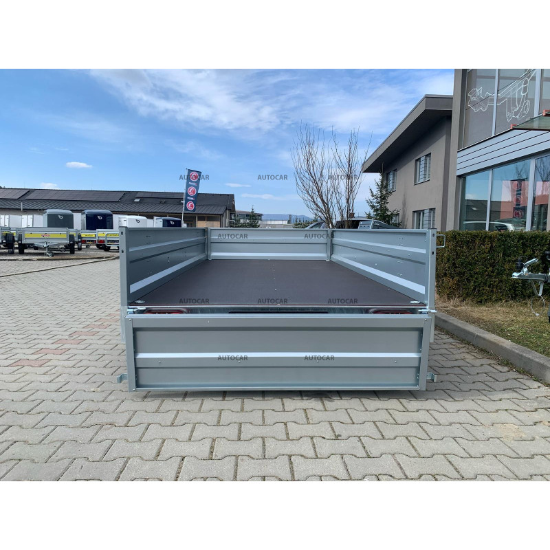Der faltbare zwei-achse ungebremst Anhänger mit robustem, 8 cm hohem geschweißt und Querverstärkung ist eine zuverlässige Lösung für den Transport jeglicher Ladung. Sein U-Profil-Rahmen und seine C-Profil-Deichsel bestehen aus bis zu 2,5 mm dickem Material. Der Anhänger verfügt über zwei Achsen mit Tragfähigkeit von 750kg und einem Anhängergelenk mit Tragfähigkeit von 1300kg. Seine breite Ladefläche mit den Maßen 3040 x 1560 und einer bordwände von 390mm, aber das Wichtigste ist die bordwände von bis zu 1mm, die Stabilität und Langlebigkeit garantiert. Dieser Wagen ist mit einem wasserfesten Sperrholzboden mit Bodenösen ausgestattet. Die klappbare Konstruktion der 8 cm hohen Deichsel ermöglicht ein einfaches Be- und Entladen der Ladung und macht diesen Anhänger für verschiedene Transportzwecke geeignet. anhänger verfügt neben der Kippfunktion zusätzlich über eine Frontöffnungsmöglichkeit und stützrad .