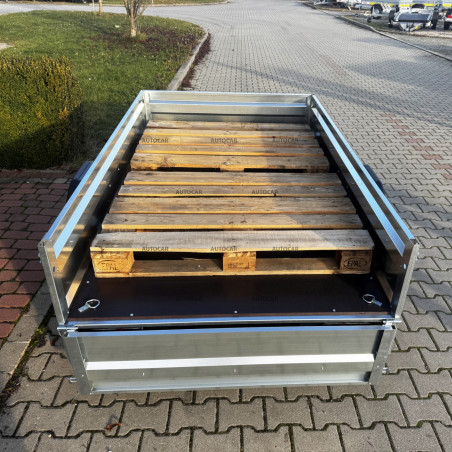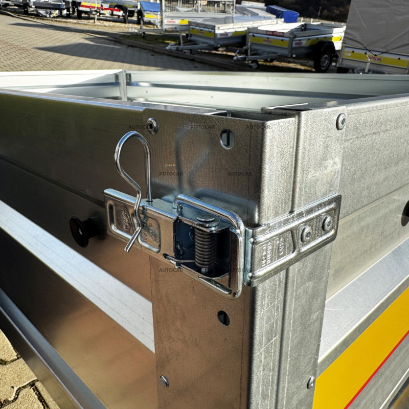 Der einachsige, ungebremst Anhänger mit 6 cm hohem Vollrahmen und zwei Querverstärkungen gewährleistet hohe Festigkeit und Stabilität auch bei voller Beladung. Vier Verankerungsösen im Boden sorgen für sichere Ladungssicherung. Die robusten, profilierten Seitenwände aus verzinktem Stahlblech garantieren eine lange Lebensdauer und Korrosionsschutz. Die hintere bordwand ist abnehmbar und ermöglicht so ein einfaches Be- und Entladen.