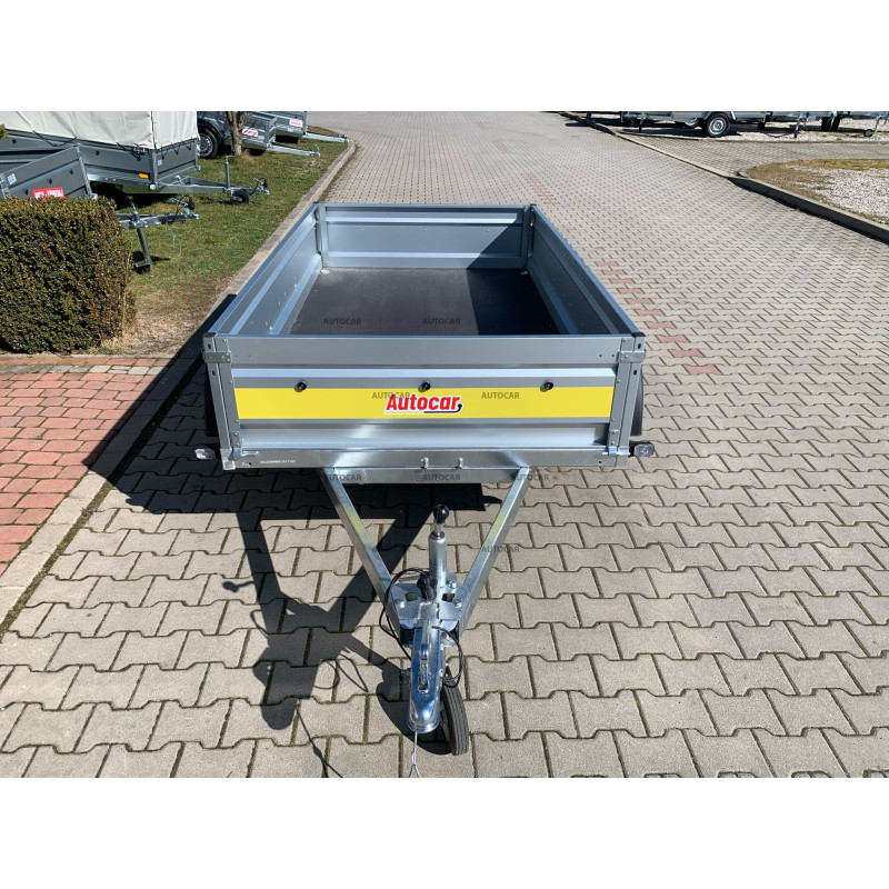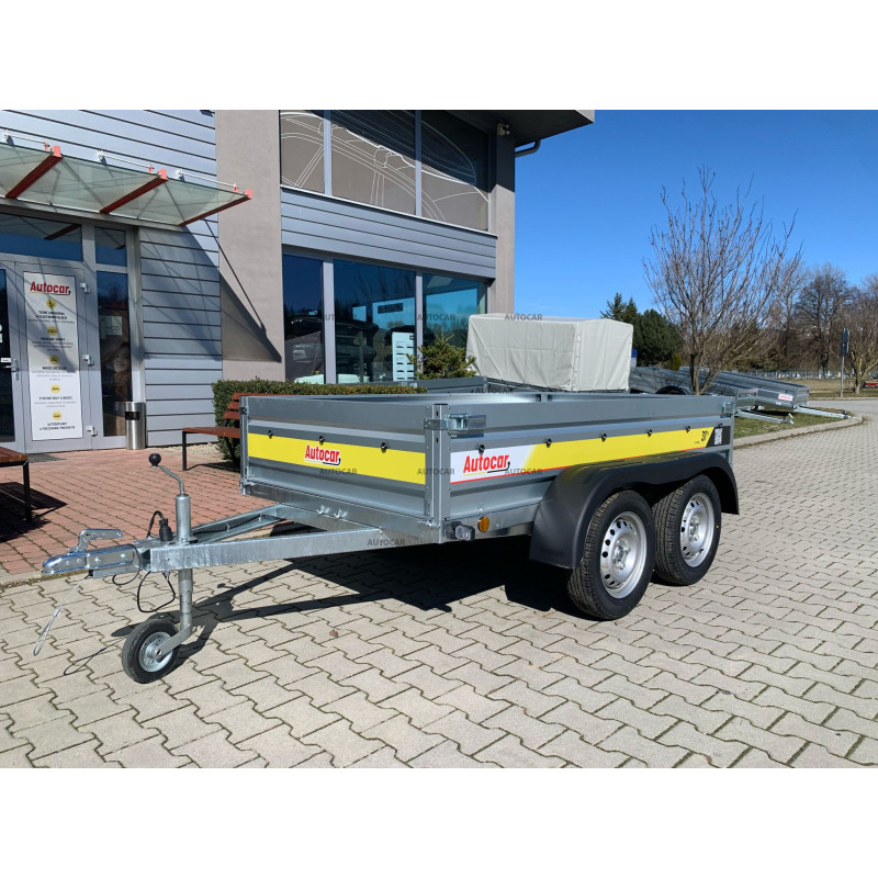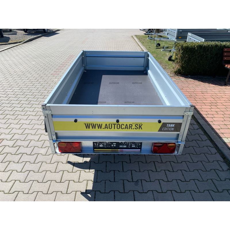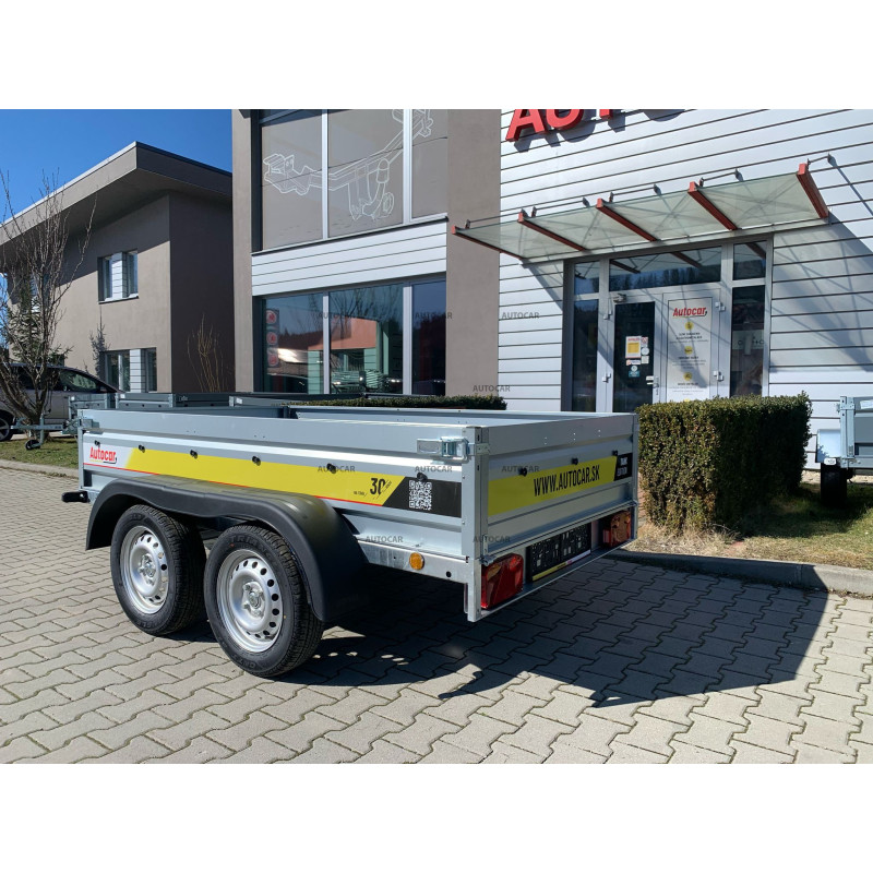 Der zweiachsige, ungebremst Anhänger mit robustem, 7 cm hohem geschweißt und Querverstärkung stellt eine zuverlässige Lösung für den Transport jeglicher Ladung dar. Sein U-Profilrahmen und die C-Profildeichsel bestehen aus bis zu 2,5 mm dickem Material. Seine breite Ladefläche mit den Maßen 2335 x 1230 und einer bordwände von 390 mm, aber das Wichtigste ist die bordwände von bis zu 1 mm, die Stabilität und Haltbarkeit garantiert. Dieser Wagen ist mit einem wasserfesten Sperrholzboden mit vier Bodenösen ausgestattet. Die klappbare Konstruktion der 8 cm hohen Deichsel ermöglicht ein einfaches Be- und Entladen der Ladung und macht diesen Anhänger für verschiedene Transportzwecke geeignet. anhänger verfügt neben der Kippfunktion auch über eine Frontöffnung und stützrad .