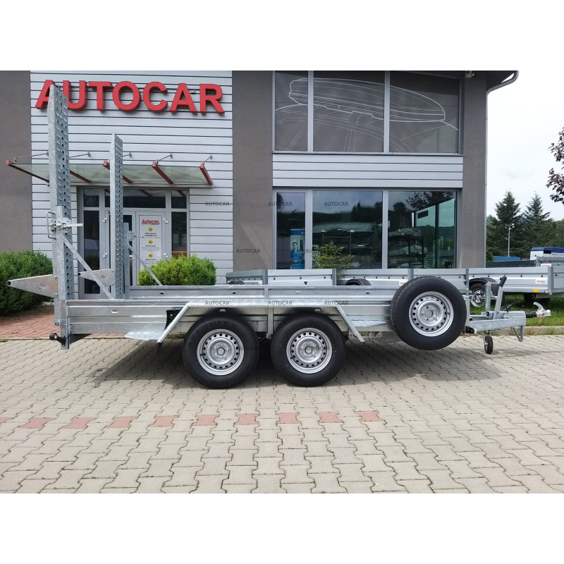 Zweiachsiger gebremster Lastanhänger für den Transport von Baumaschinen mit Rädern, die neben der Ladefläche platziert sind. Einfaches Aufladen der Maschine wird durch Auffahrrampen erleichtert. Die Eisenwände des Anhängers sind verschweißt und direkt mit dem Rahmen verbunden, was sie besonders widerstandsfähig macht. Die Konstruktion besteht aus einem robusten feuerverzinkten geschweißten Stahlrahmen, der eine lange Lebensdauer garantiert. Zur Standardausstattung gehören: 6x Halterungen zur Befestigung der Maschine, ein Boden aus wasserfestem Sperrholz, Stützrad. Der Anhänger hat eine Garantie von 2 Jahren und ist für eine Geschwindigkeit von 140 km/h ausgelegt.