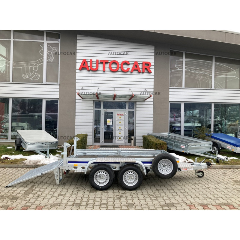 Doppachser, gebremster Transportanhänger für Baumaschinen mit Rädern, die neben der Ladefläche angebracht sind. Das einfache Auffahren mit dem Gerät wird durch eine Rampe ermöglicht. Die Konstruktion besteht aus einem robusten, feuerverzinkten, geschweißten Stahlrahmen, der eine lange Lebensdauer gewährleistet. Die Grundausstattung umfasst: 4x Befestigungspunkte für das Gerät, wasserdichte Sperrholzplatte, Stützrad, Stützkeile. Der Anhänger hat eine Garantie von 2 Jahren und ist für eine Geschwindigkeit von 130 km/h ausgelegt.