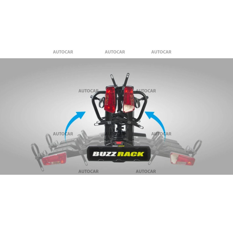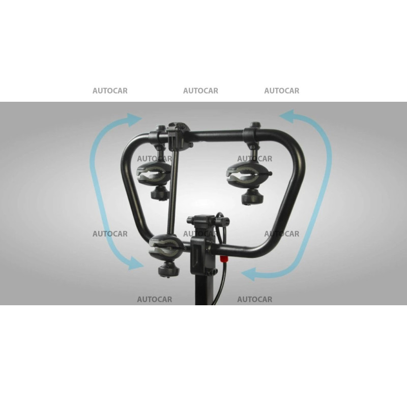 Einer der besten faltbaren Fahrradträger auf dem Markt für den Transport von drei E-Bikes . Schnellspann-Kugelsystem, Laderampe im Preis inbegriffen, Doppelverriegelung der Fahrräder.