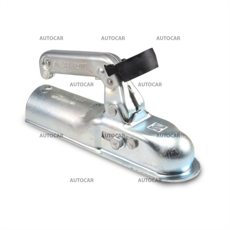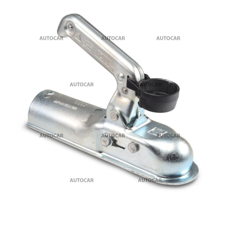 Standard-Anhängekupplung 800 kg für ungebremste Anhänger. Konzipiert für die Montage an einem Rohr mit einem Durchmesser von 60 mm. Der Steuergriff ist mit einem Kompressionsverschluss und einem Loch für ein Schloss ausgestattet.
