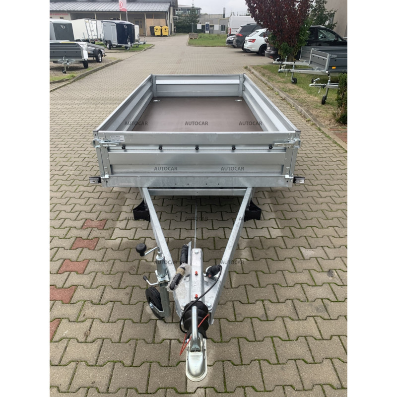 Dieser zwei-achse gebremst ist auf Haltbarkeit und Langlebigkeit ausgelegt. Das Gesamtgewicht des LKW beträgt 2000 kg, was bedeutet, dass er eine große Menge Ladung transportieren kann. Der Wagen besteht aus kaltgepressten Seitenwänden , was seine Haltbarkeit und Festigkeit erhöht. Diese Struktur ermöglicht den sicheren Transport verschiedener Arten von Gütern, einschließlich schwerer oder sperriger Lasten. Die Räder befinden sich neben der Ladefläche, was das Be- und Entladen vereinfacht. Dies ermöglicht einen bequemen Zugang zur Ladung.