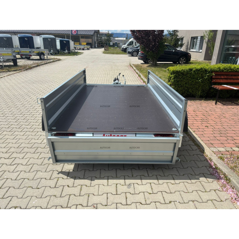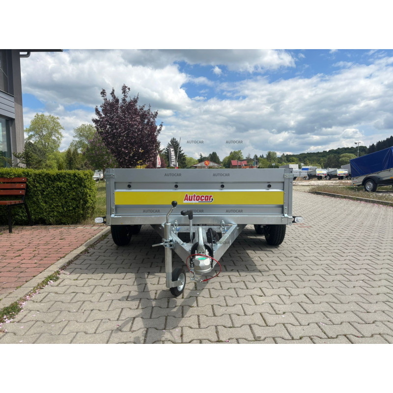 Der zweiachsige gebremst Anhänger mit einem robusten, 8 cm hohen geschweißt mit Querverstärkung stellt eine zuverlässige Lösung für den Transport jeglicher Ladung dar. Sein U-Profilrahmen und die C-Profildeichsel sind aus bis zu 2,5 mm dickem Material hergestellt. Der Anhänger hat zwei Achsen mit Tragfähigkeit von 1300 kg, insgesamt 2700 kg, und eine Auflaufbremse mit Tragfähigkeit von 2700 kg. Seine breite Ladefläche mit den Abmessungen 2630 x 1540 und eine bordwände von 390 mm, aber das Wichtigste ist die bordwände von bis zu 1 mm, die Festigkeit und Haltbarkeit garantieren. Dieser Anhänger ist mit einem wasserfesten Sperrholzboden mit Bodenösen ausgestattet. Die klappbare Deichsel hat in Verbindung mit dem Rahmen eine Höhe von 11 cm und ermöglicht so ein einfaches Be- und Entladen von Ladung, wodurch dieser Anhänger für verschiedene Transportanforderungen geeignet ist. Außer der Kippfunktion hat anhänger auch eine nach vorne zu öffnende Vorderseite und stützrad im Lieferumfang enthalten.