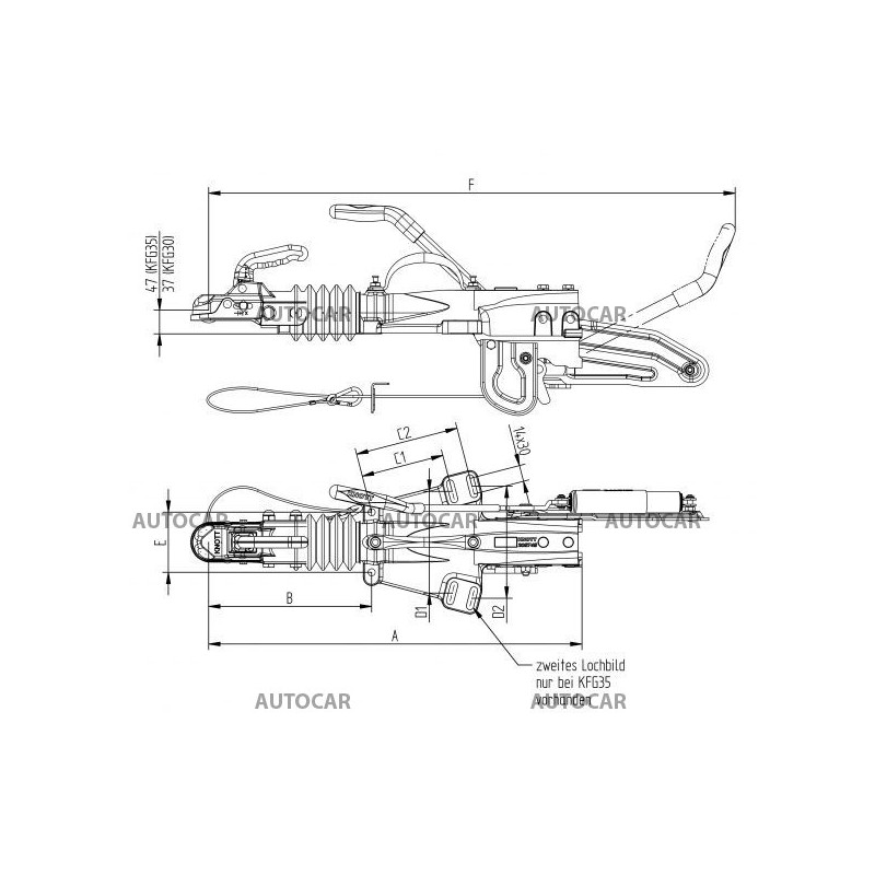 KNOTT -Gussauflaufbremse an der V-förmigen Deichsel ist ideal für Anhänger mit einem Maximalgewicht von bis zu 3500 kg. Mit der Möglichkeit einer vertikalen Belastung von bis zu 150 kg bietet es auch für anspruchsvollere Anwendungen eine sichere und zuverlässige Lösung. Die Montagemaße dieser Bremse sind für eine einfache Montage optimiert: Der Abstand der Montagelöcher E beträgt 140 mm, der Abstand der Löcher C beträgt 166/207 mm und die Gesamtlänge D beträgt 203/224 mm. Dank ihrer robusten Gusskonstruktion zeichnet sich diese Auflaufbremse durch außergewöhnliche Haltbarkeit und lange Lebensdauer aus, was sie zur idealen Wahl für schwerere Anhänger und anspruchsvolle Einsatzbedingungen macht.
