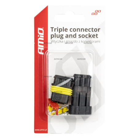 Dieses 3-polige Steckverbinderset ermöglicht den einfachen und schnellen Anschluss von Stromkreisen. Kompakte Abmessungen und hochwertige Verarbeitung gewährleisten zuverlässigen Kontakt und lange Lebensdauer bei Verwendung in verschiedenen Arten von Elektroinstallationen.