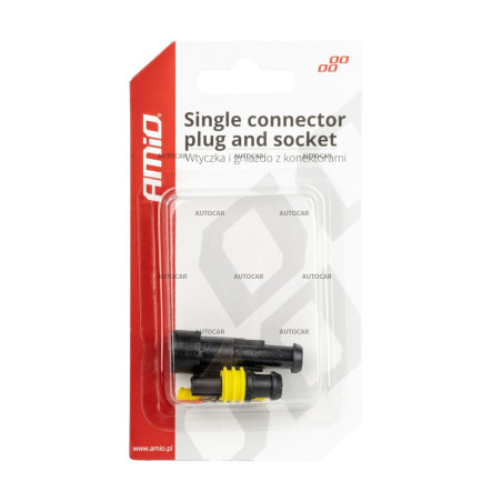 Ein praktisches Set elektrischer Steckverbinder, bestehend aus Stecker und Buchse, für den sicheren und stabilen Anschluss eines einzelnen Drahtes. Eine ideale Lösung für Standard- und Universal-Elektroinstallationen, einschließlich Anwendungen im Automobilbereich.