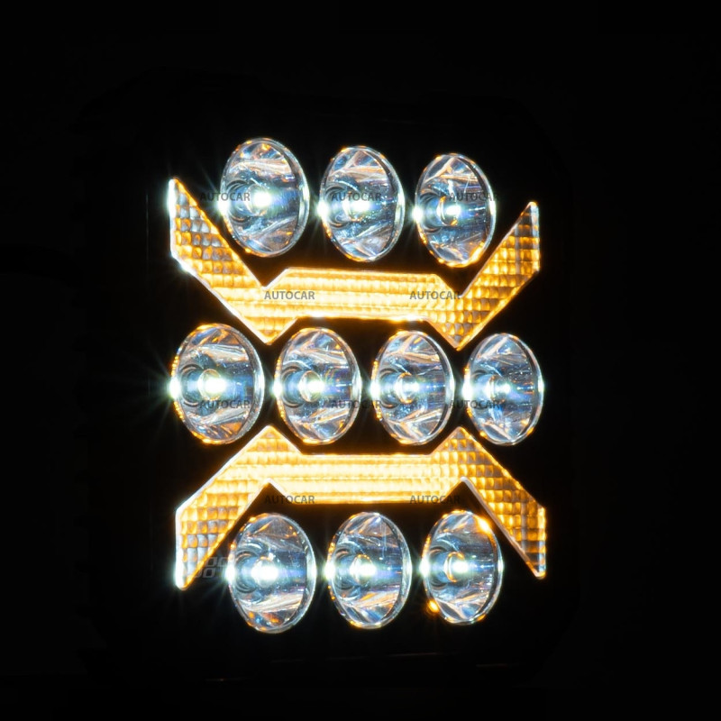 Drei Lichtfunktionen: zwei weiße und eine orange