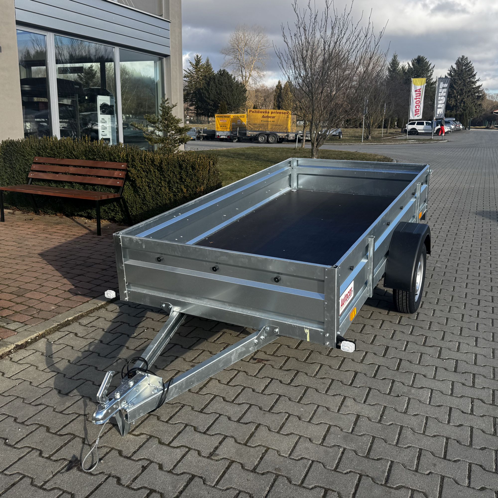 Der einachsige, ungebremst Anhänger mit 8,5 cm hohem Vollrahmen und vier Querverstärkungen gewährleistet hohe Festigkeit und Stabilität auch bei voller Beladung. Vier Verankerungsösen im Boden sorgen für sichere Ladungssicherung. Die robusten, profilierten Seitenwände aus verzinktem Stahlblech garantieren eine lange Lebensdauer und Korrosionsbeständigkeit. Zusätzliche, mit dem Rahmen verbundene Seitenwandverstärkungen erhöhen die Biegefestigkeit.