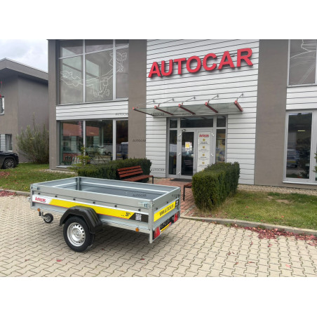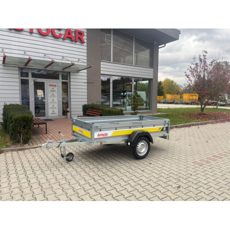 Der robuste eine-achse Kippanhänger ungebremst Bremsen mit einem 5 cm hohen geschweißt und 3-facher U-Profil-Querverstärkung stellt eine zuverlässige Lösung für den Transport jeglicher Ladung dar. Seine breite Ladefläche mit den Abmessungen 2330 x 1120 und bordwände von 390 mm, aber das Wichtigste sind die Dicke und das Profil bordwände von bis zu 1 mm, die Festigkeit und Haltbarkeit garantieren. Dieser Anhänger ist mit einem wasserfesten Sperrholzboden mit vier Bodenösen und einer 7 cm hohen Deichsel mit C-Profil ausgestattet. Der Anhänger hat außerdem vordere und hintere bordwände und stützrad mit Halterung, die im Preis inbegriffen sind. Die vorderen und hinteren bordwand sind abnehmbar und der gesamte Anhänger ist zum Schutz vor Korrosion feuerverzinkt. Die elektrische Installation am Anhänger ist standardmäßig 7-polig ohne Rückwärtsgang. Das Umklappen der Ladefläche ist gegen Aufpreis möglich.