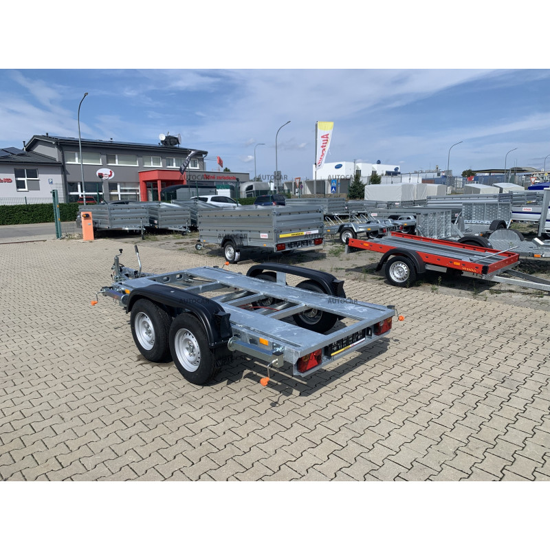 Zweiachsiger Lastanhänger für den Transport von Stromerzeugern, Kompressoren, Aggregaten, Pumpen usw. mit Rädern, die neben der Ladefläche angebracht sind. Die Konstruktion besteht aus einer robusten, feuerverzinkten, geschweißten Stahlkonstruktion, die eine lange Lebensdauer garantiert. Zur Standardausstattung gehören: Stützrad, Unterlegkeile, 4x Stützfüße. Der Anhänger hat eine Garantie von 2 Jahren und ist für eine Geschwindigkeit von 130 km/h ausgelegt.