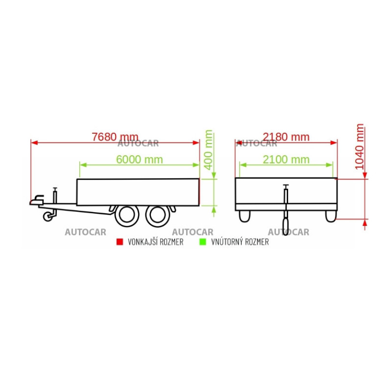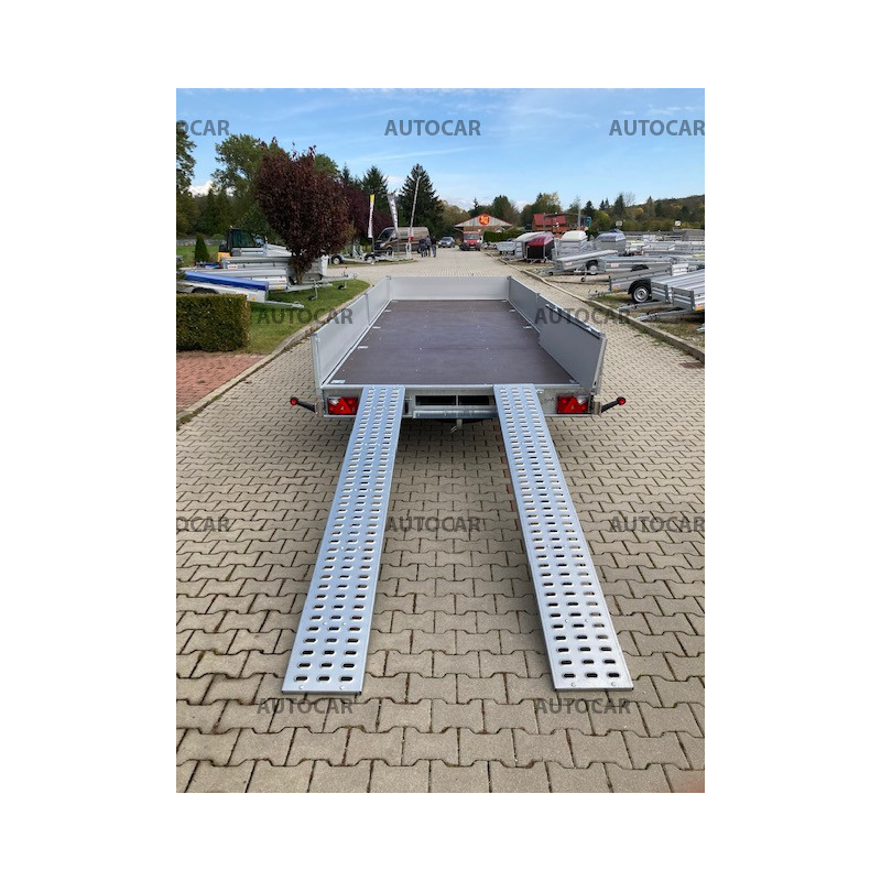Der universal Anhänger mit zwei Achsen mit den Rädern unter die Laderfläche. Der Aufbau ist verzinkt und komplet geschweisst. Der Anhänger ist mit 2 Garantie und Konstruktionsgeschwindigkeit: 140 km/h.