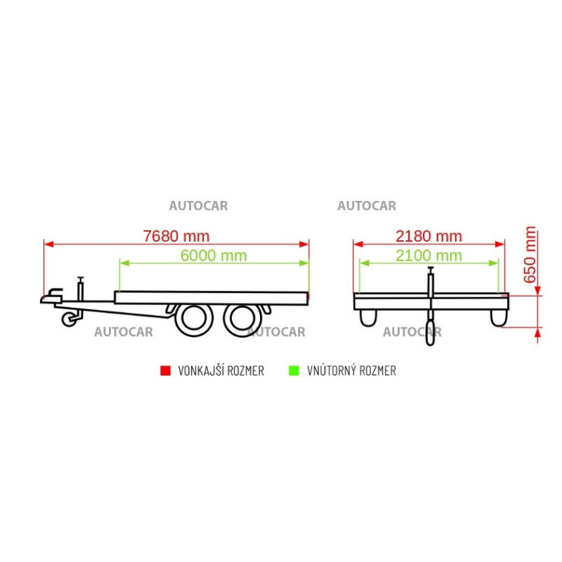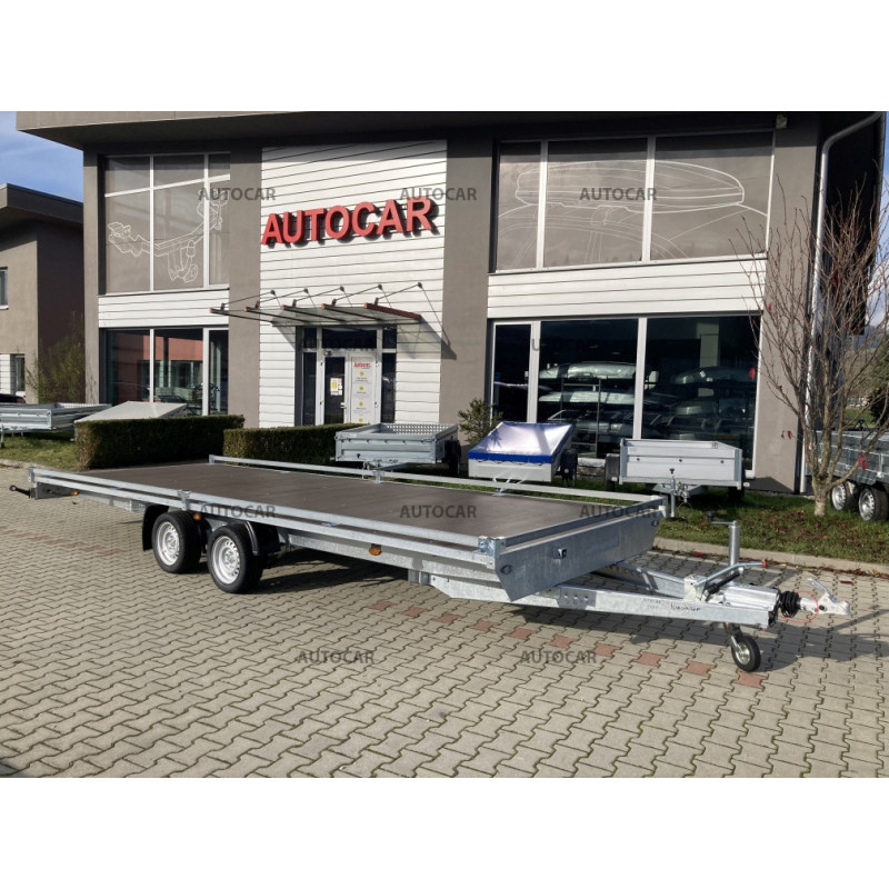 Der universal Anhänger mit zwei Achsen mit den Rädern unter die Laderfläche. Der Aufbau ist verzinkt und komplet geschweisst. Der Anhänger ist mit 2 Garantie und Konstruktionsgeschwindigkeit: 140 km/h.